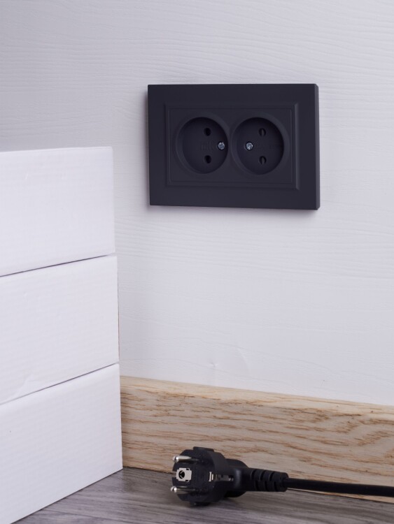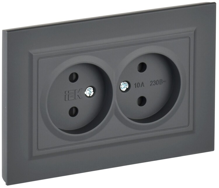 IEK BRITE Графит Розетка 2-я без з/к с з/ш 10А в сб. РСш12-2-БрГ