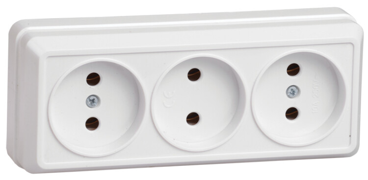 GENERICA OKTAVA РС23-2-ОБ Розетка 3местн. без з/к 10А откр.уст. (белый)