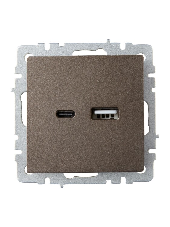 IEK BRITE BASE Темн.бронза Розетка USB A+C 18Вт РЮ11-1-БрТБ