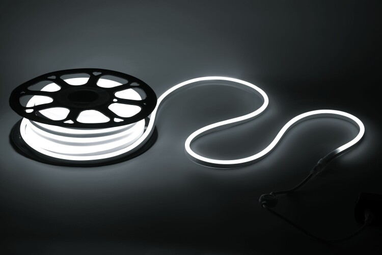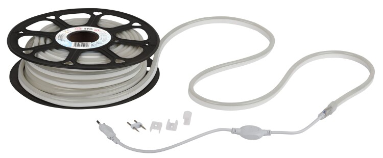 ЭРА Светодиодная неоновая лента N2835-120-IP67-220V-20m-6500 (1/60) со степенью защиты от пыли и влаги IP67 - современный способ создания оригинального освещения помещений и зданий, как внутри, так и снаружи.. Cветодиодная лента устанавливается при помощи крепежей (монтажных скоб), монтаж на двусторонний скотч исключён. Торцы ленты необходимо закрывать заглушками. Гибкая LED-лента ЭРА позволяет устанавливать подсветку на уличные конструкции для освещения и привлечения внимания к объектам. Лента неоновая от торговой марки ЭРА поставляется в удобных катушках. Рабочее напряжение ленты составляет 220В, а мощность равна 7 Вт/м. Светодиодная лента обладает световым потоком 145 Лм/м, и цветом свечения - холодный белый (6500 K)