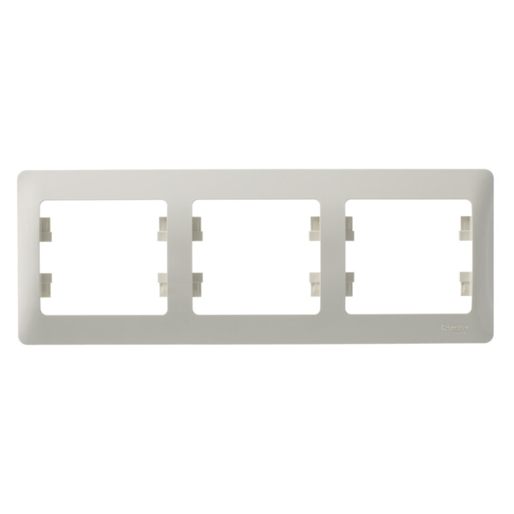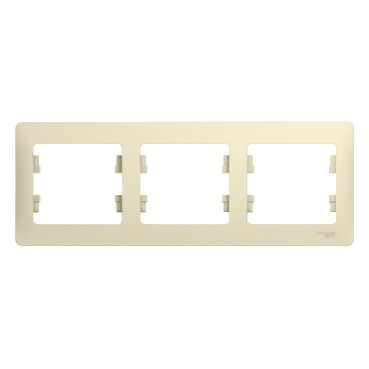 Рамка Systeme Electric (ранее Schneider Electric) серии Glossa (цвет бежевый) трёхместная. Устанавливается в горизонтальном положении. Выполнена из материала PС+ASA, стойкого к УФ-излучению и появлению царапин. Позволяет гармонично вписать электроустановочное изделие в интерьер помещения.