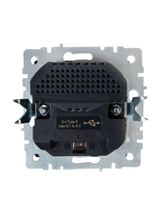 IEK BRITE BASE Алюминий Розетка с з/к/ш 16А с USB A+A 3,1А РЮш10-2-БрА