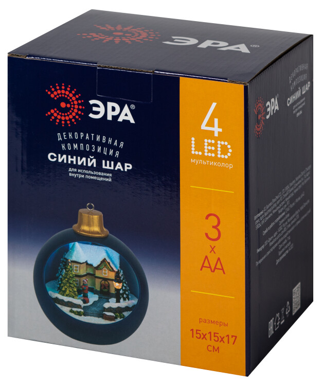 ЭРА Светодиодная новогодняя фигура EFIS-S04 композиция Шар мультиколор 3* АА 15*15*17 см