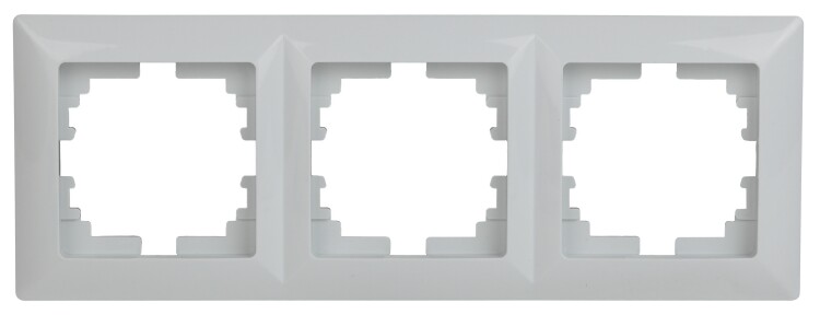 Рамка выполнена из термопласта. Устанавливается на 3 устройства серии Intro Solo, смонтированные в два горизонтально установленных подрозетника.