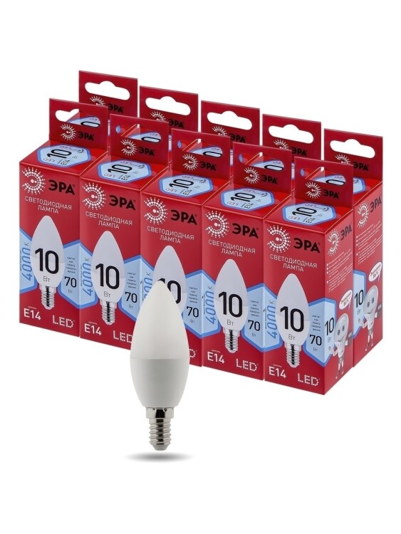 ЭРА Лампа светодиодная RED LINE LED B35-10W-840-E14 R 10Вт свеча нейтральный белый с вет Е14
