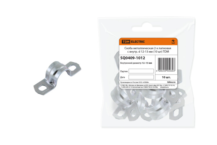 TDM Скоба металлическая 2-х лапковая с внутр. d 12-13 мм (10 шт).