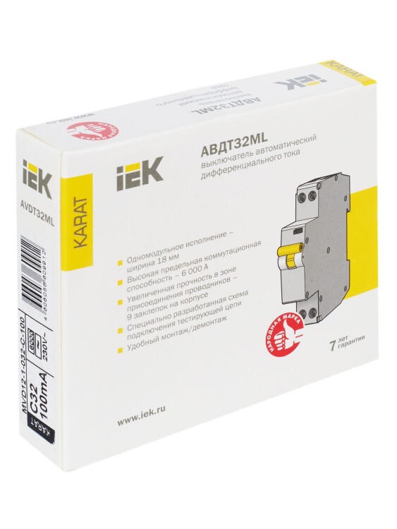 Автоматические выключатели дифференциального тока АВДТ32МL для однофазных сетей в одномодульном исполнении (18мм) предназначены для защиты человека от поражения электрическим током при повреждении изоляции электроустановок, а также для защиты от перегрузки и короткого замыкания в сетях переменного тока напряжением 230 В и частотой 50 Гц.