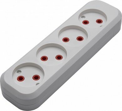 Розетка STEKKER PST10-400-20 (разборная, внутр.колодка из самозатух.полипропилена) на 4 гнездо, с заземлением. Материал: полипропилен, латунь, цвет белый, размер 240*58*30мм. Номинальное напряжение 250, номинальный ток 10А, диапазон рабочих температур 0..+40°C, IP20