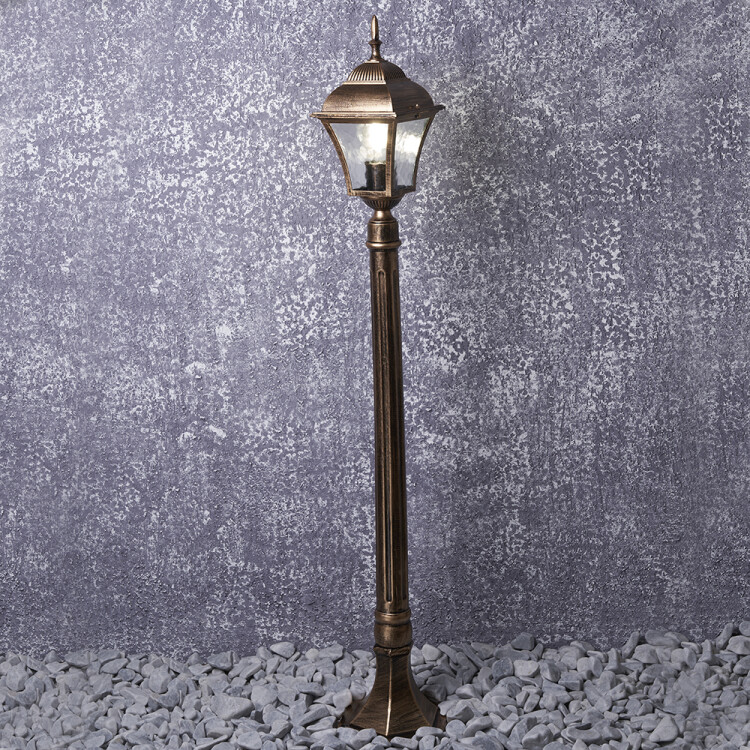 Светильник садово-парковый, серии «Таллин», (НТУ) FERON PL616 60W, E27, 230V, IP44, цвет черное золото, 4-х гранник, столб, 145*145*1080мм