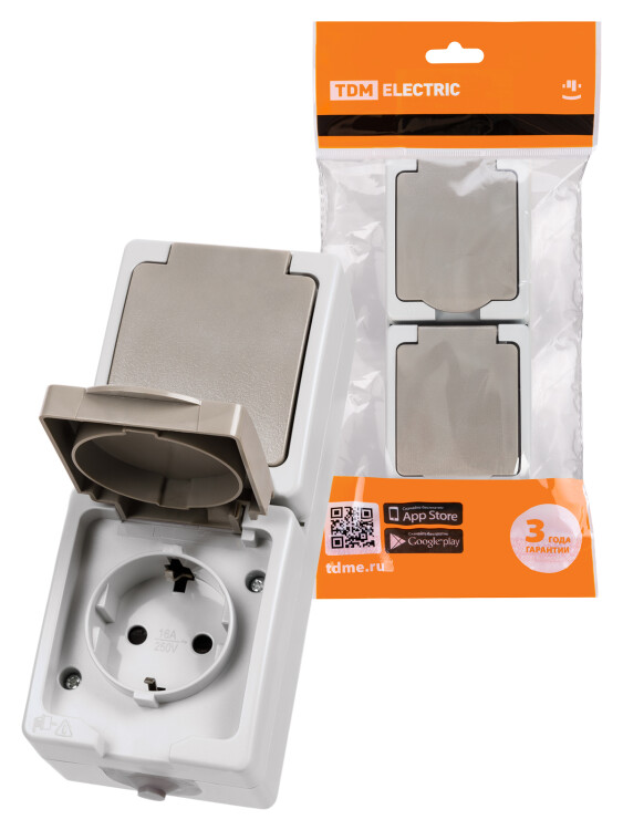Применение:Бытовые помещения с повышенной влажностью (ванные, санузлы и т.д.).Производственные помещения (мастерские, цеха и т.д.)Наружная установка вне помещений. Материалы:Корпус устройств выполнен из самозатухающего АБС-пластика и обеспечивающего прочность, термостойкость изделий и устойчивость к воздействию солнечных лучей.Контакты розеток выполнены из высокоупругой фосфористой бронзы, обеспечивающей надежный контакт и пожаробезопасность на протяжении всего срока службы изделий.Металлокерамические (AgNi) контакты выключателей, получаемые методом спекания смеси их порошков, позволяют сочетать высокую дугостойкость с хорошей проводимостьюВинты и пружины откидной крышки выполнены из нержавеющей стали.Преимущества:Быстрозажимные клеммы механизма позволяют автоматически регулировать усилие прижима проводника, не позволяя ему просаживаться.Герметичные съемные вводы с двух сторон дают возможность подключения как сверху, так и снизу.Заглубленные пазы для крепления изделия к поверхности обеспечивают класс изоляции II.К каждому изделию в яркой индивидуальной упаковке со стикером, на который нанесена вся необходимая информация о изделии и штрихкод EAN-13, прилагается паспорт с подробной инструкцией по монтажу Назначение:Подключение бытовых нагрузок к сети переменного тока и управление сетями освещения в условиях повышенной влажности и пылезагрязненности. 0: