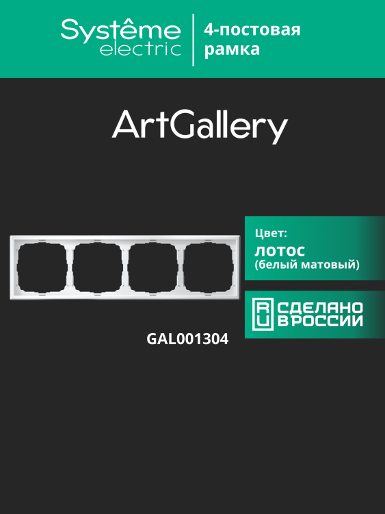 Рамка Systeme Electric серии ArtGallery в цвете лотос четырёхместная.