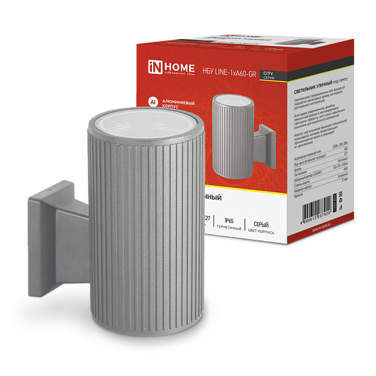 IN HOME Светильник уличный односторонний НБУ LINE-1хA60-GR алюминиевый под 1хA60 E27 серый IP65