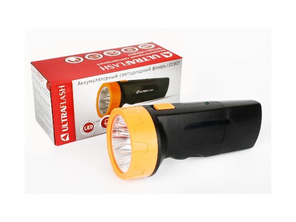 Ultraflash LED3827 (фонарь аккум 220В, черн /желт, 5 LED, SLA, пластик, коробка)