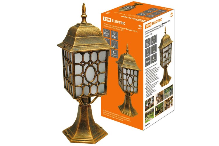 TDM Светильник садово-парковый "Беседка" 60 Вт, стойка, матовое/бронза, Е27.