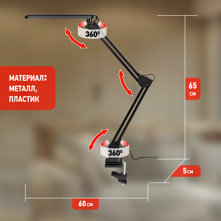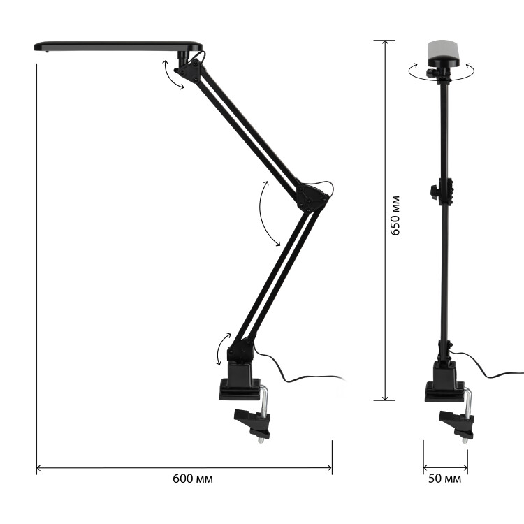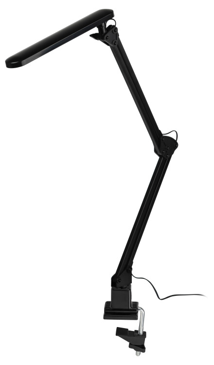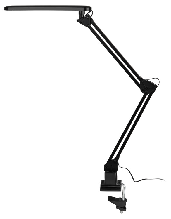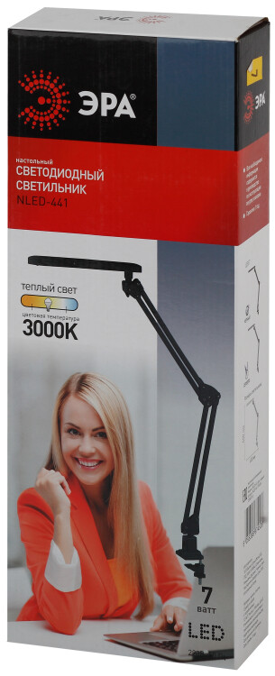 Настольный светильник ЭРА NLED-441-7W-BK со светод иодами (LED) в качестве источников света. Выключатель на плафоне. Высота плафона регулируется двухсекционной сгибающейся стойкой. Удобное крепление на струбцину к любой плоской поверхности.