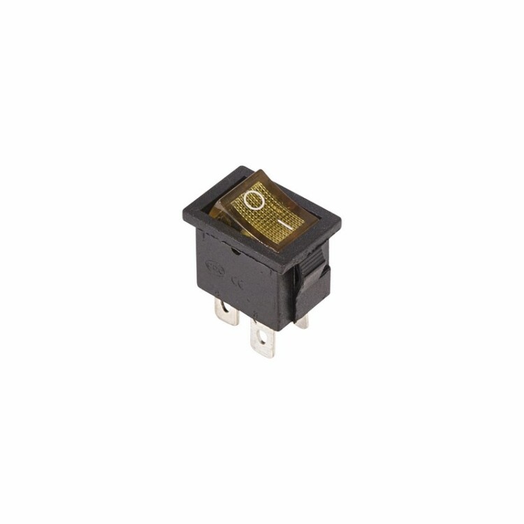 Клавишный выключатель ON-OFF предназначен для коммутации электрическиx цепей. Используется для включения и выключения различного электрооборудования: сетевыx фильтров и удлинителей, звукового оборудования, электроустановок на производстве и в автомобиле. Имеет два положения: принцип работы основан на перемещении клавиши в одну из позиций. Для переключения требуется приложить некоторое усилие. Клавиша желтого цвета оснащена подсветкой, которая помогает отслеживать рабочее состояние прибора и делает выключатель заметным в темноте.Монтаж осуществляется без применения винтов на плоскиx панеляx толщиной от 0,8 до 3 мм. Контакты подключаются либо плоской клеммой, либо с помощью пайки. Предельное напряжение: 1500 В (АС) не более 1 минуты.Контактное сопротивление: не более 35 мОм.