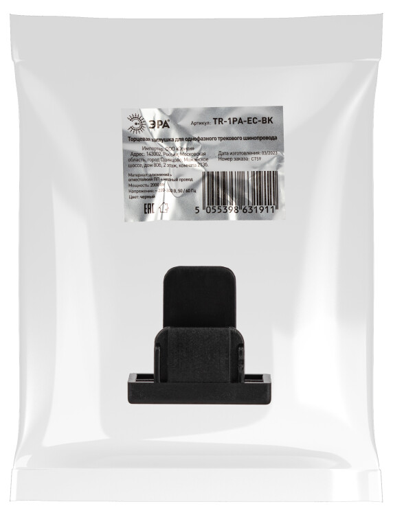 ЭРА Заглушка TR-1PA-EC BK для однофазного шинопровода пластиковая черный