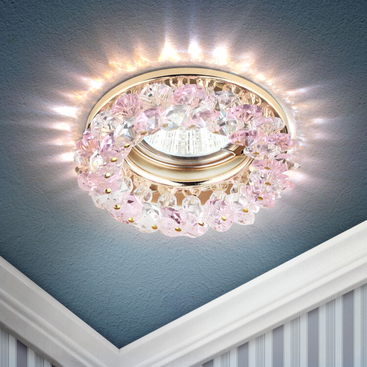 Встраиваемый светильник DK16 GD/WH/PK круглый с мелкими хрусталиками станет эффектным решением для любого помещения: его можно разместить в спальне, в детской или на кухне. Светильник можно использовать как в качестве базового освещения, так и для создания акцентов в определенных зонах комнаты. Благодаря скрытой части корпуса светильники можно встраивать в потолок или стены, создавая разный дизайн помещений. Встраиваемый светильник ЭРА с приятным дизайном подойдет для комнат с разным интерьером: от лофта до модерна, классицизма или минимализма. При помощи точечных светильников можно освещать только те участки помещения, которыми вы пользуетесь в данный момент, не затрачивая лишнюю элеткроэнергию. Максимальная мощность лампы составляет 50 Вт. Корпус встраиваемого светильника изготовлен из нержавеющей стали . Диаметр отверстия, требуемого для установки светильника составляет 65 миллиметров, а диаметр самого светильника – 90 миллиметров. Цоколь под лампу GU5.3 входит в комплект. Купив встраиваемый светильник бренда ЭРА, вы останетесь довольны и сможете создать уют в Вашем доме. Внимание: лампа не входит в комплектацию.