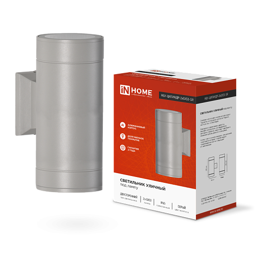 Светильник уличный двусторонний НБУ ЦИЛИНДР-2xGX53-GR алюминиевый под лампу 2хGX53 серый IP65 IN HOME