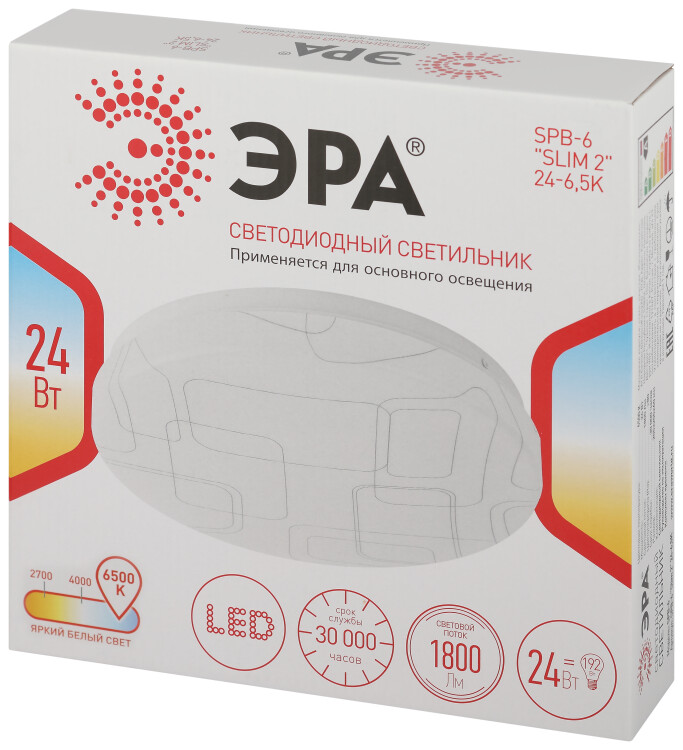 Потолочный светильник SPB-6 "Slim 2 " 24-6K от бренда ЭРА идеально впишется в любой интерьер. Стальной корпус светодиодной л юстры обладает противоударными свойствами и отделан глянцем. Электросветильник оснащён светодиодами с холодно-белым свечением. LED светильник имеет мощность 24 Вт и равномерное светораспределение. Плафон потолочной люстры выполнен из матового пластика, защищающего от воздействия прямого света. Рассеиватель отличается особым дизайном.