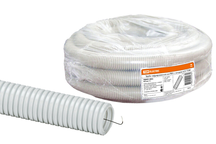 TDM Труба гофрированная ПВХ d 25 с зондом (75 м) легкая