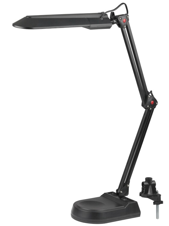 Настольный светильник ЭРА NL-202-G23-11W-BK предназ начен для использования с энергосберегающей лампой, лампа входит к комплект. Два варианта крепления в комплекте: устойчивое основание и струбцина. Высота плафона регулируется двухсекционной сгибающейся стойкой. Отлично экономит рабочее пространство. Варианты с комбинированным креплением дают возможность выбрать, как будет удобнее использовать светильник - с основанием его можно разместить в любом месте на поверхности стола, со струбциной компактно и надежно закрепить на край.