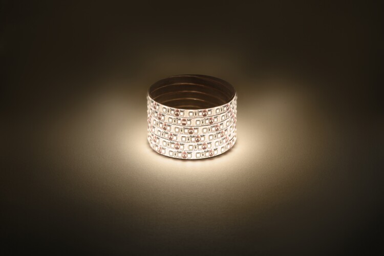 Светодиодная лента LS2835-120LED-IP65-WW-eco-5m со степенью защиты от пыли и влаги IP65 - современный способ создания внутреннего освещения, подсветки ниш, лестничного пространства, систем хранения, а также декоративного и художественного оформления любых объектов и форм в помещениях с повышенным уровнем влажности и уличного освещения. Легко и быстро устанавливается на любой гладкой поверхности с помощью скотча, расположенного на оборотной стороне ленты. Используя алюминиевый профиль, можно создавать необычные и функциональные решения освещения в Вашем интерьере. Рабочее напряжение ленты составляет 12 В, а мощность равна 9,6 Вт/м. Светодиодная лента обладает световым потоком 840 лм/м с теплым белым цветом свечения (3000К).