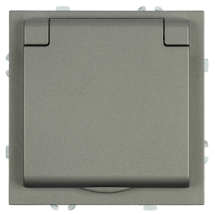 STEKKER Эмили Розетка 1-местная с крышкой с защ. штор с/з, 250В, 16А,RST16-5112-09, антрацит, soft t