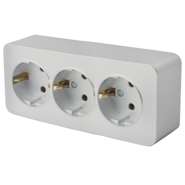 Розетка MST16-13-03 на 3 поста, с заземлением. Материал: ABS пластик, цвет серебро, размер 149*64*42мм. Номинальное напряжение 230, номинальный ток 16А, диапазон рабочих температур 0..+35°C, IP20. Серия София "TM Stekker" открытой установки выполнена в современном дизайне. Серия София имеет большой ассортимент изделий, который позволяет использовать их в самых различных проектах. Широкий выбор из 5 цветов позволит подобрать цветовые сочетание для любого интерьера. Не горючий внутренний блок и устойчивый к УФ излучению материал исполнения обеспечат безопасность и долговечность использования.