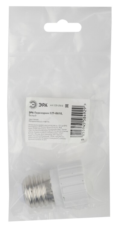 переходник E27-GU10 изготавливается из термостойкого пластика, материал химически устойчивый к агрессивным средам, обладает высокой прочностью и теплостойкостью.