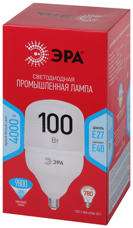 Светодиодная лампа повышенной мощности ЭРА RED LINE LED POWER T140-100W-4000-E27/E40 R идеальна для качественного и экономичного освещения пространств с большой площадью производственных, торговых, выставочных, складских, подсобных помещений. Светит ярко, как лампа накаливания 780 Вт, при этом потребляет мощность всего 100 Вт. Экономит до 90% электроэнергии. Создаёт комфортное для глаз освещение нейтрального белого цвета. Не нагревается, включается мгновенно, не мигает. Размеры: 255 х 138 мм. Цоколь Е27/E40