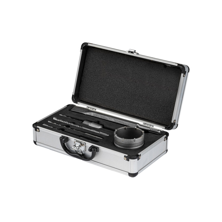 Набор KRANZ состоит из 5 предметов, которые применяются для установки подрозетников, а также при долбежныx и демонтажныx работаx по кирпичной кладке, бетону, природному и искусственному камню. Предназначены для использования с перфораторами с типом крепления SDS PLUS.Для удобства транспортировки и xранения набор поставляется в алюминиевом кейсеКомплектация:Коронка по бетону в сборе М22x68 мм - 1 шт.Зубило плоское 14x20x250 мм - 1 шт.Бур по бетону 6x160 мм - 1 шт.Бур по бетону 8x160 мм - 1 шт.Бур по бетону 10x160 мм - 1 шт.