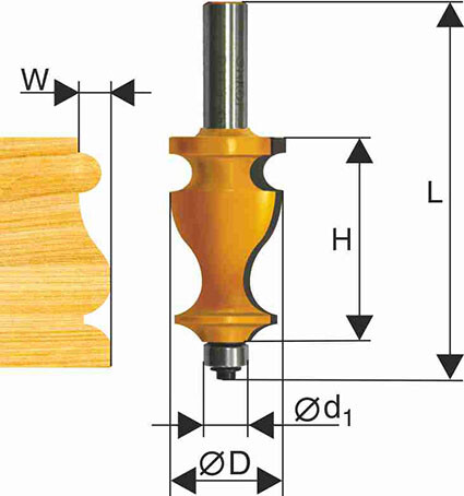Диаметр фрезы D: 27 мм, Диаметр подшипника d1: 12,7 мм, Диаметр хвостовика d: 12 мм, Глубина выборки W: 7,9 мм, Рабочая высота Н: 41,3 мм, Общая высота L: 90 мм, Артикул подшипника: 46872