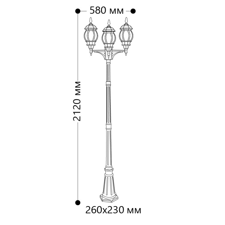 Светильник садово-парковый, серии «Классика», (НТУ) FERON 8115/PL8115 100W, E27, 230V, IP44, цвет черный, 8-и гранник, столб, 400*580*2120мм