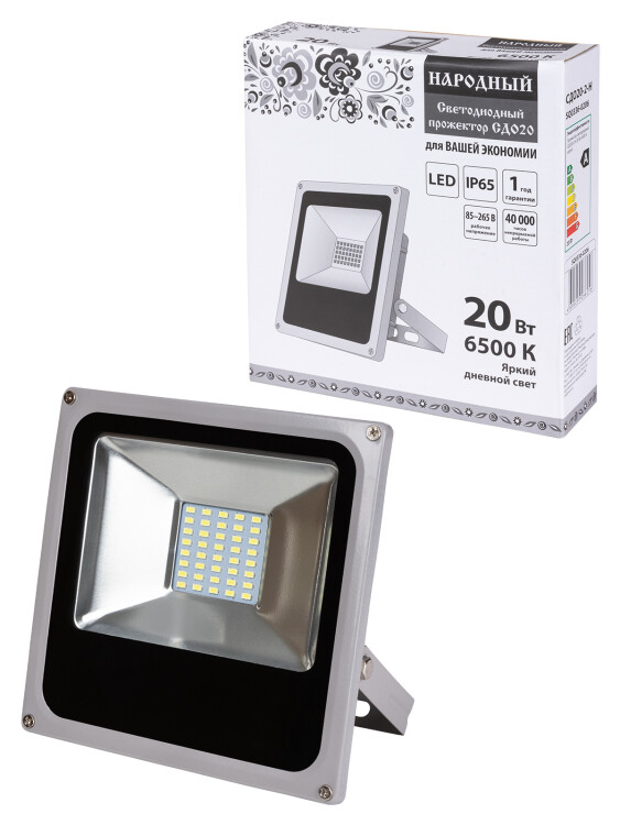 TDM Прожектор светодиодный СДО20-2-Н 20 Вт, 6500 К, серый