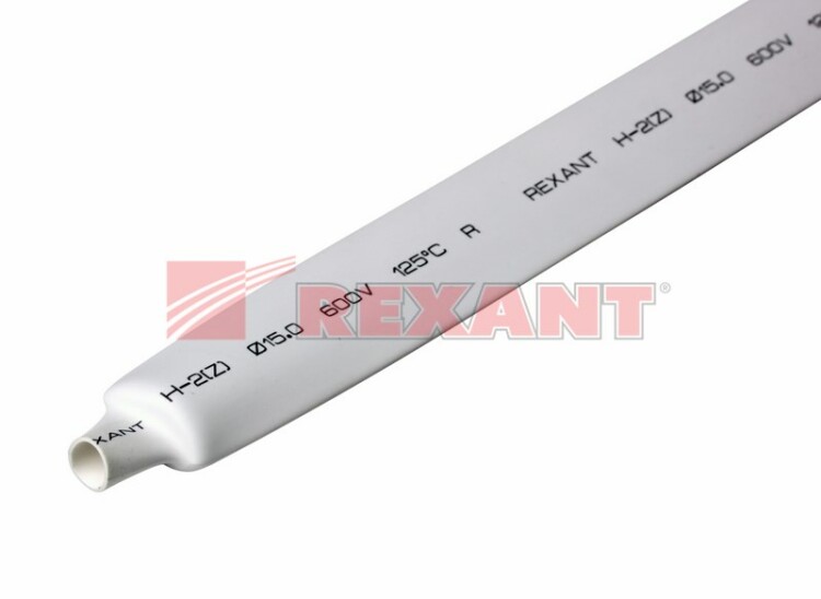 REXANT 15.0 / 7.5 мм 1м термоусадка белая.