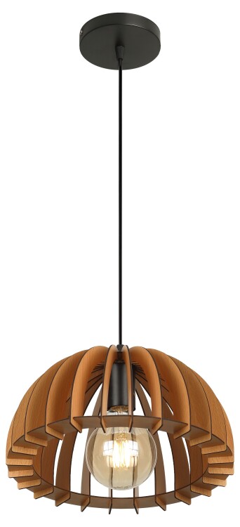 Серия чёрных подвесов с деревянным абажуром на 1 лампу — идеальное сочетание лофт-эстетики и натуральных материалов. Доступны варианты из светлого и чёрного дерева. Подходит лампа с цоколем E27, мощностью до 60 Вт (лампа в комплект не входит). Высота светильника регулируется для удобного размещения в любом пространстве.