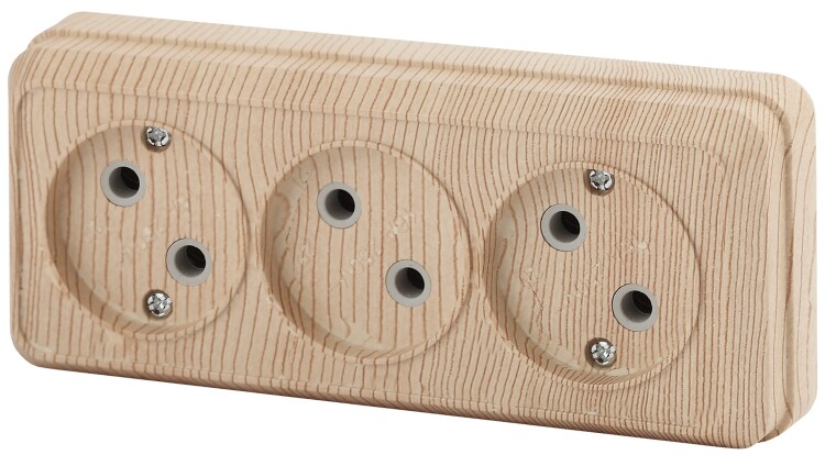 Розетка Intro Quadro 2-205-11 без заземления трехмест ная 3х2P, 16А-250В, IP20, ОУ, сосна