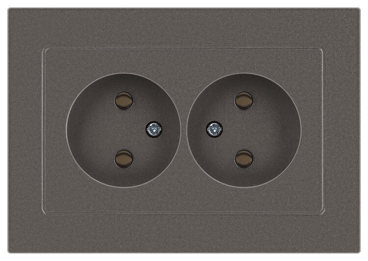 Розетка двойная без заземления серии Intro Accent скрытой установки цвет титан 6-204-09. Номинальные характеристики 16А 250В. В ыполнена из негорючего термопласта, оснащена винтовыми клеммами. Парные клеммы обеспечивают соединение шлейфом. Монтаж в подрозетник производится и на лапки, и на винты.