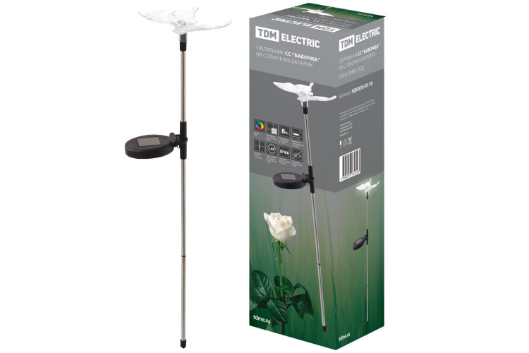 TDM Светильник СС "Бабочка" на солнечных батареях, сталь, меняет цвет