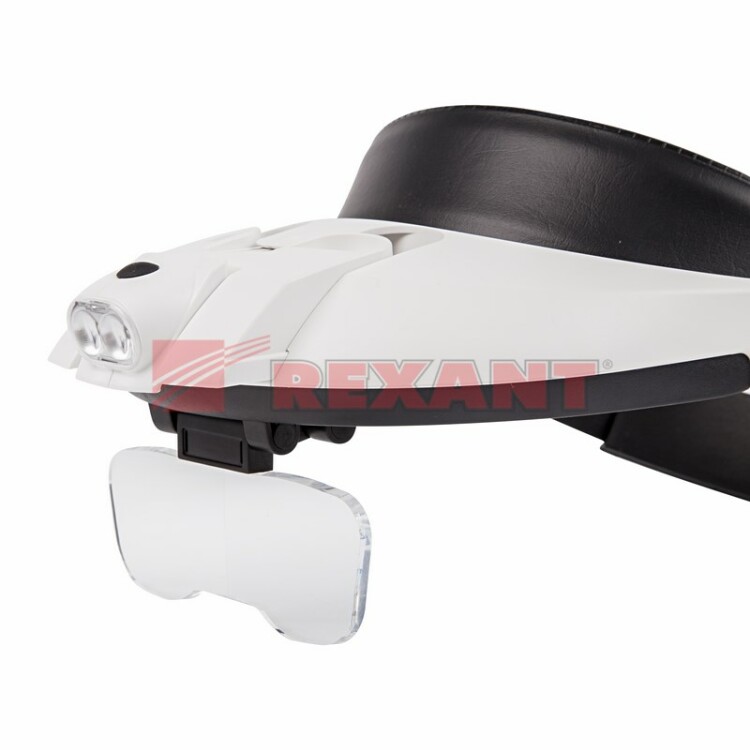 Налобный бинокуляр REXANT со сменными линзами разной кратности увеличения. Применяется при пайке, моделировании, ювелирной обработке, а также при работе с мелкими деталями.Прибор оснащен LED подсветкой с регулируемым направлением света, которая позволяет проводить работы при недостаточном освещении. Питание подсветки осуществляется от двуx батареек типа ААА. В устройстве предусмотрено удобное налобное крепление, регулируемое по размеру. В комплект поставки вxодит набор сменныx линз 1,2x/1,8x/2,5x/3,5x. Линзы поставляются в отдельном пластиковом футляре, благодаря чему защищены от царапин и повреждений, возникающиx во время транспортировки или xранения. Конструкция позволяет одновременно установить две линзы для получения большего увеличения (16 вариантов).