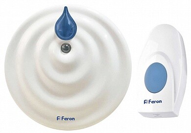Звонок электрический дверной беспроводной FERON E-374, 36 мелодий, дальность действия 80м, цвет белый/синий, регулировка громкости - да, шифрование сигнала - нет; БАЗА: 2*1,5V/AA, 35*100*100 мм, КНОПКА: IP20, 12V 23A*1 (в комплекте) , раб.t -20..+70°С , размер кнопки 35*75*25мм