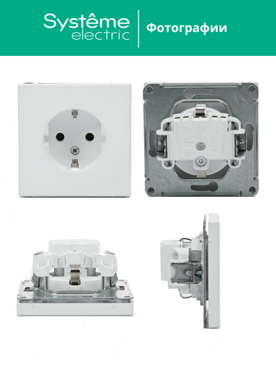 Механизм Systeme Electric серии ArtGallery в цвете белый розетки одинарной с заземлением и без шторок подходит для сетей 250 В, на ток 16 А.