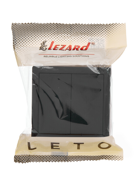 LETO Выключатель двойной чёрный бархат (10шт/120шт)
