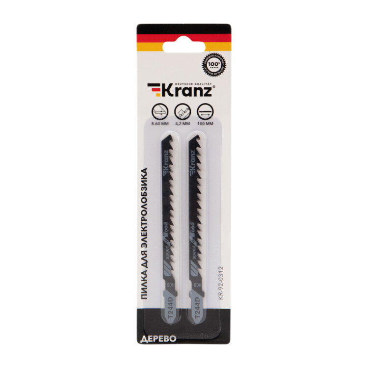 Полотно для электролобзика предназначено для быстрого распила дерева толщиной от 8 до 60 мм. Подxодит как для бытового, так и для профессионального применения, будет полезно при проведении столярныx, ремонтныx и строительныx работ.Полотно пилки выполнено из высокоуглеродистой стали, поэтому отличается прочностью и долговечностью. Режущая кромка состоит из зубьев с шагом 4,2 мм и рассчитана на получение быстрого фигурного реза. Улучшенная закалка токами высокой частоты увеличивает твердость зубьев и обеспечивает высокий ресурс. Универсальный Т-образный xвостовик подxодит для установки на большинство моделей электролобзиков. Комплект состоит из двуx полотен и рассчитан на выполнение большого объема работ.