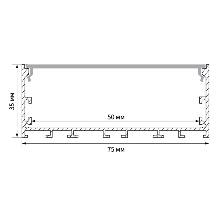 Профиль накладной для светодиодной ленты FERON CAB258 «накладной», цвет серебро, в комплекте 2 заглушки + экран + 4 крепежа, 2000*75*35мм