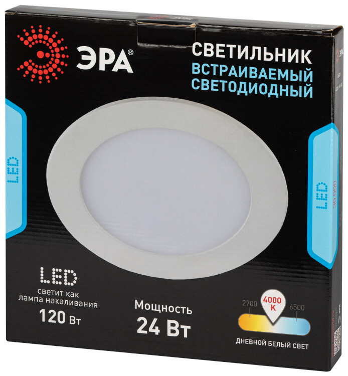Круглый светодиодный светильник LED 1-24-4K - эффектное решение для любой комнаты в вашем доме. Светодиодный светильник можно использовать как в качестве базового освещения, так и для создания акцентов в определенных зонах комнаты. Благодаря скрытой части корпуса светильники можно встраивать в потолок или стены, создавая разный стиль помещений. Светильник ЭРА с приятным дизайном подойдет для помещений с разным интерьером: от минимализма до хай-тека, прованса или скандинавского стиля. Цветовая температура составляет 4000К, она оптимальна для глаз и не заставляет их испытывать дискомфорт. Максимальная мощность лампы – 24 Вт. Корпус встраиваемого светильника изготовлен из ударопрочного алюминия, что делает его особенно удобным в использовании, а благодаря матовому стеклу, защищающему лампу, свет рассеивается и становится мягким. Диаметр отверстия, требуемого для установки светильника составляет 265 мм, а диаметр самого светильника – 300 мм. Купив точечный светильник бренда ЭРА, вы останетесь довольны и сможете создать приятную атмосферу в доме.