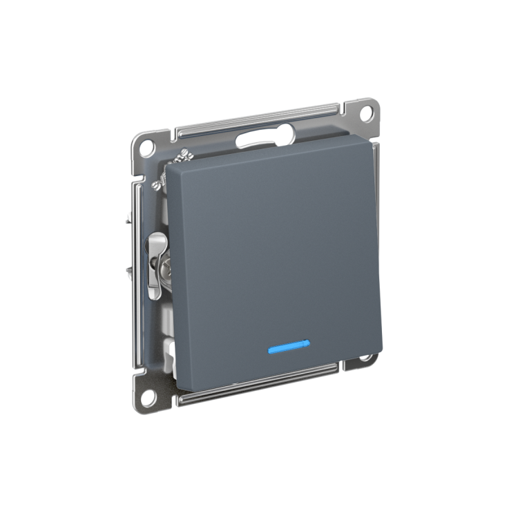 Механизм выключателя 1-клавиш ного с подсветкой Systeme Electric (ранее Schneider Electric) серии AtlasDesign в цвете грифель подходит для сетей 250 В, на ток 10 А. Благодаря светодиодной подсветке синего цвета изделие легко найти в темноте. Лицевые детали из качественного ABS-пластика, устойчивого к царапинам и УФ-излучению. Усиленные прямые монтажные лапки для лучшей фиксации механизма в монтажной коробке.
