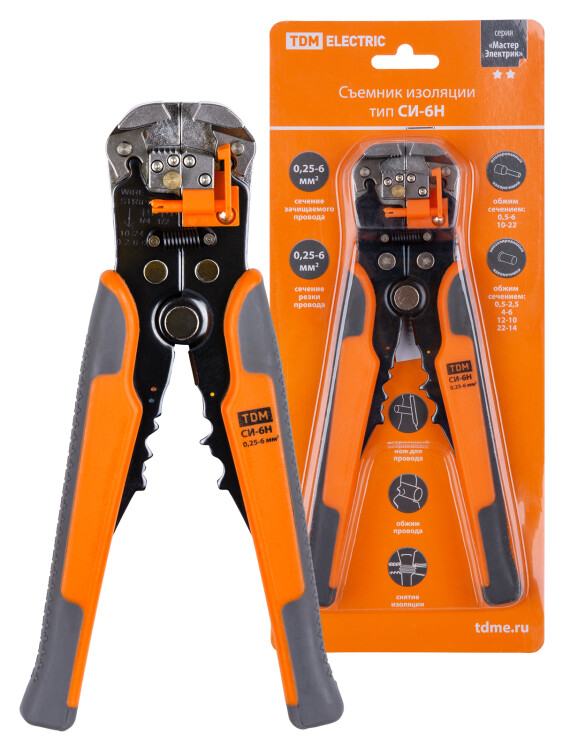 TDM Съемник изоляции СИ-6Н, сечения: зачистки 0,25-6 мм, обжима 0,5-6 мм "МастерЭлектрик"