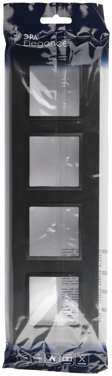 Рамка для выключателей и розеток на 4 поста серии Эра Elegance Classic цвет антрацит 14-5014-05. Сделана из поликарбоната. Используется только с механизмами серии Эра Elegance.